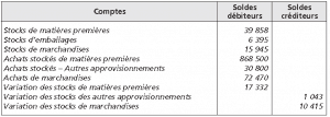 Cet exercice porte sur le compte de résultat:Variations des stocks relatives aux achats. L’extrait de la balance, par soldes, après inventaire de l’entreprise