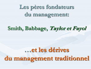 Le cours parle des fondateurs du management à savoir: Adam Smith, Babbage, Taylor et Fayol . Le cours abordera aussi le sujets de la division du travail, les grandes étapes de la révolution industrielle, les 4 principes du taylorisme. ... Lire la suite