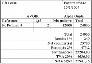 Dans cet exercice corrigé de comptabilité, on va établir et comptabiliser des factures : Le 1/1/2004, Alpha d’Oujda qui se spécialise dans l’achat et la revente